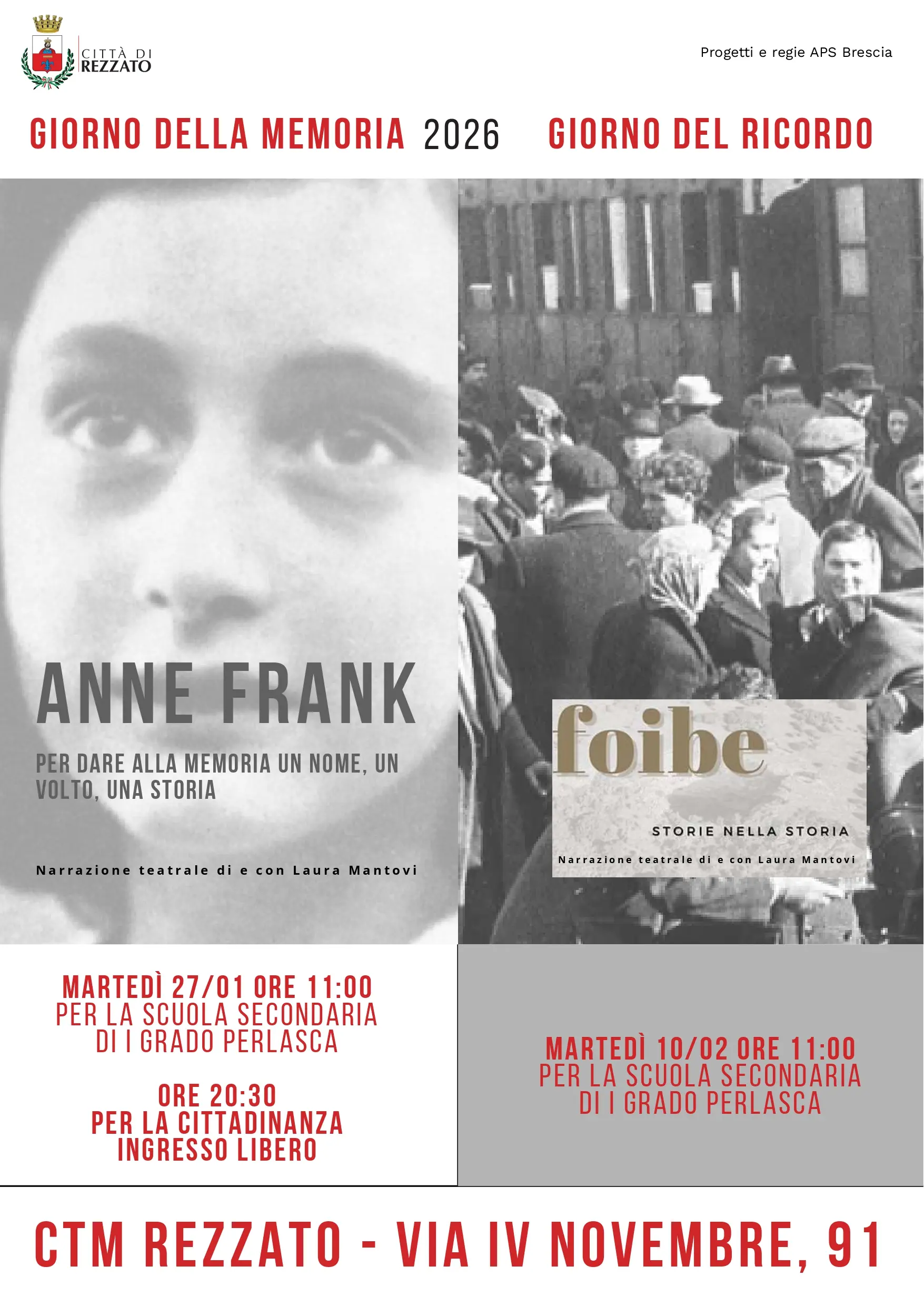 ANNE FRANK. Per dare alla memoria un volto, un nome, uno storia. Narrazione teatrale di e con Laura Mantovi
