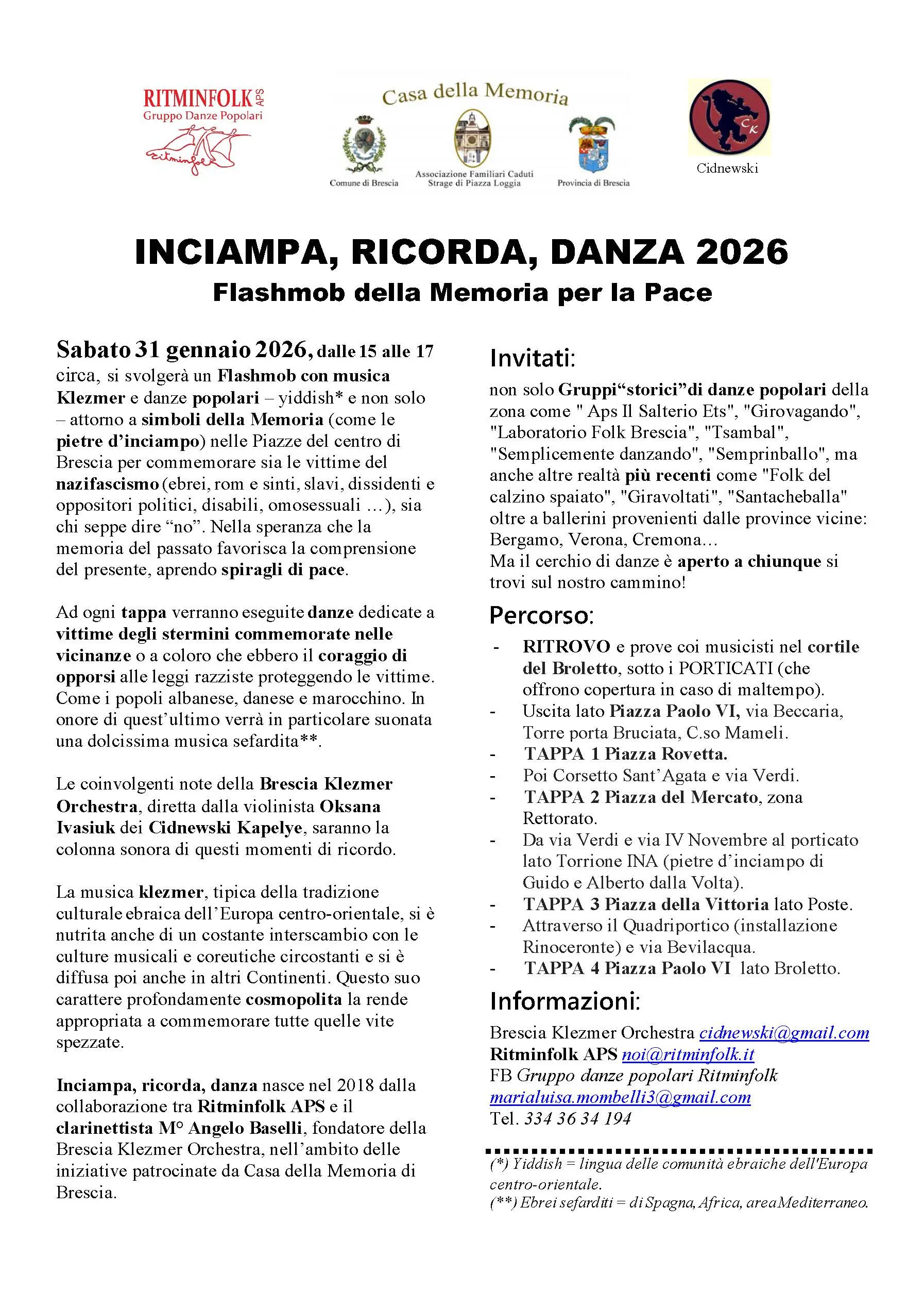 Inciampa, ricorda, danza 2026. Flashmob della memoria per la Pace