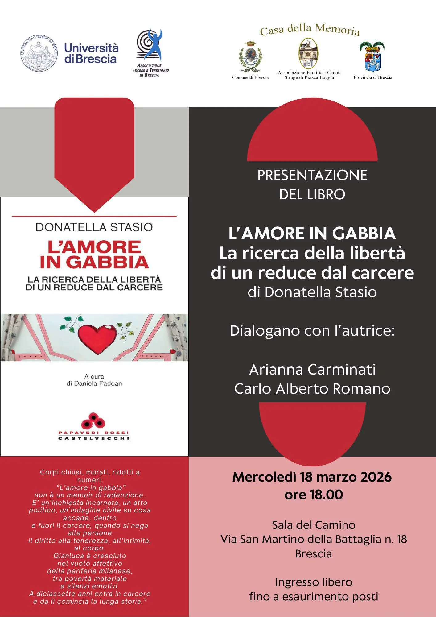 Presentazione del libro "L'amore in gabbia. La ricerca della libertà di un reduce dal carcere" di Donatella Stasio. Dialogano con l'autrice Arianna Carminati e Carlo Alberto Romano