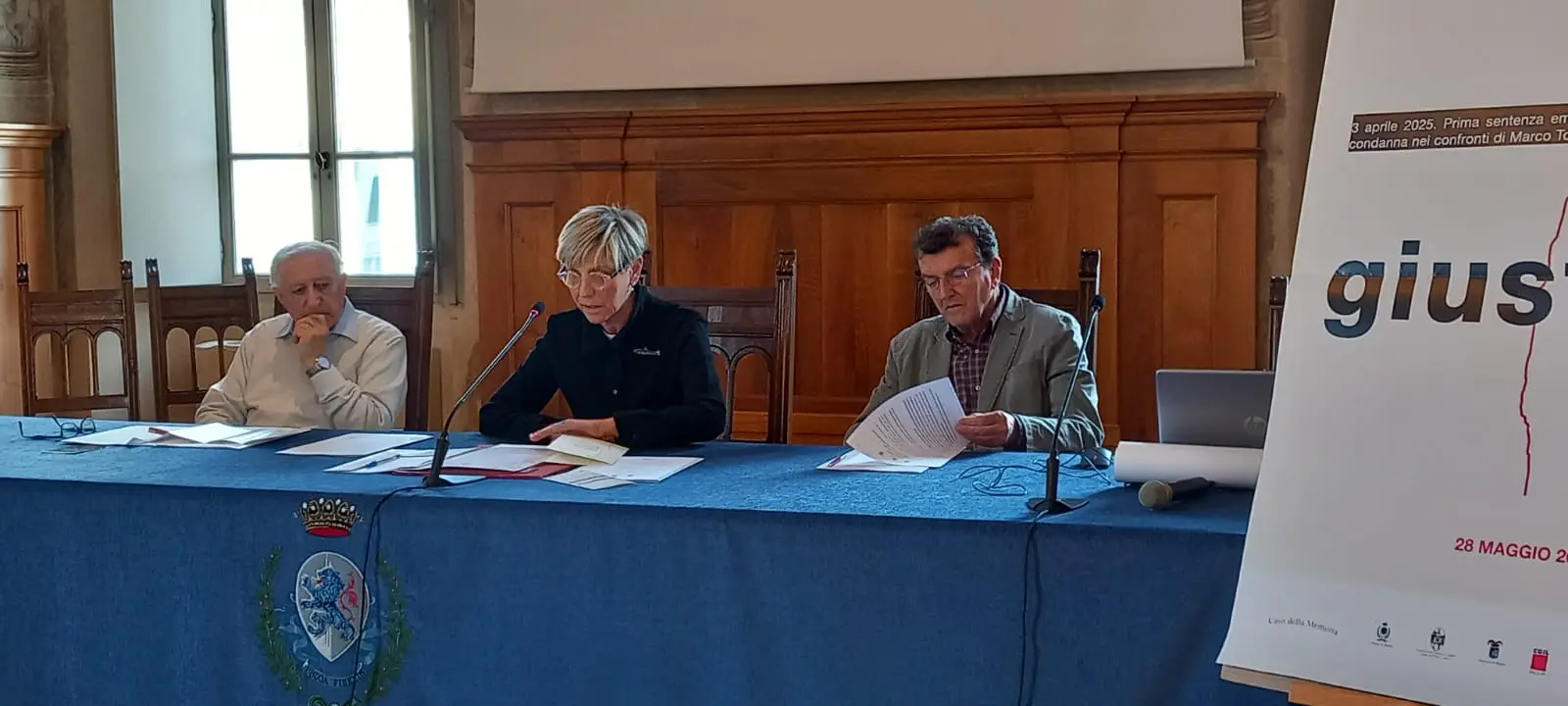 Presenti Manlio Milani, la sindaca Laura Castelletti, l'assessore Marco Fenaroli