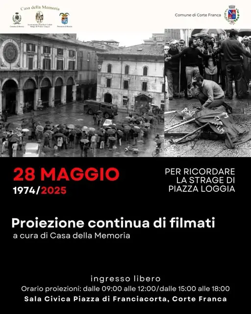 Mercoledì 28 maggio 2025, presso la Sala Civica di Piazza di Franciacorta, si terrà una proiezione continua di filmati, con ingresso libero.