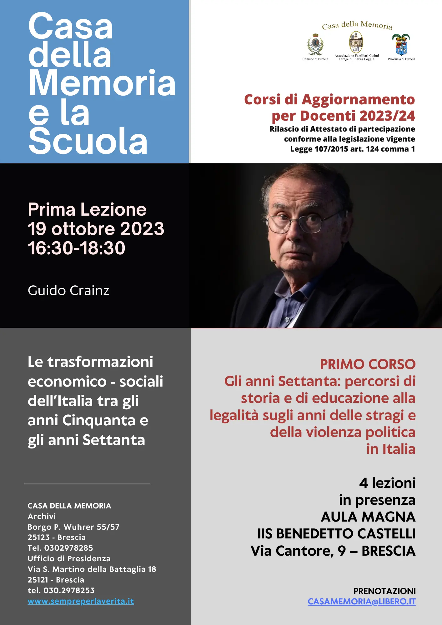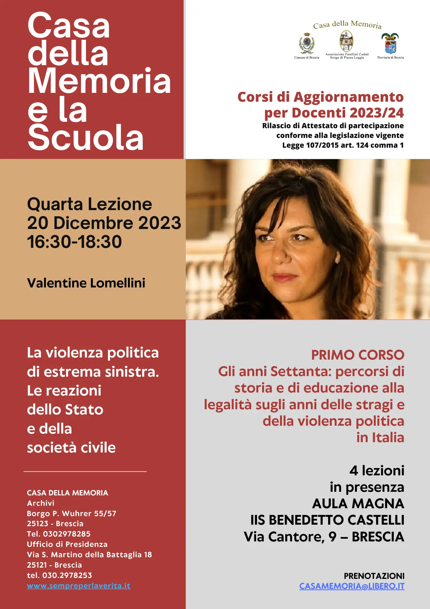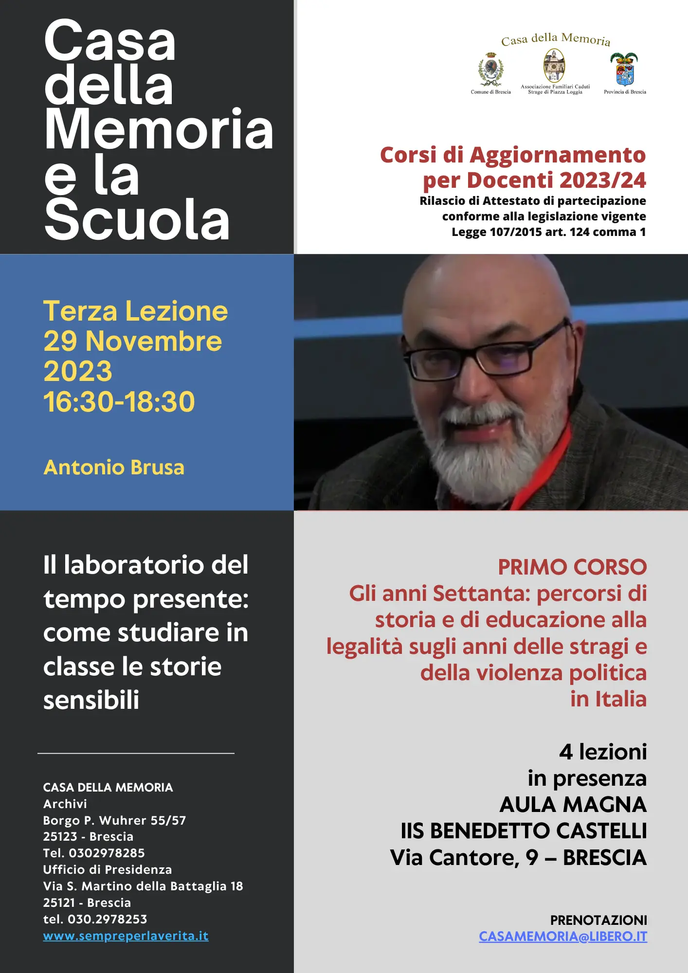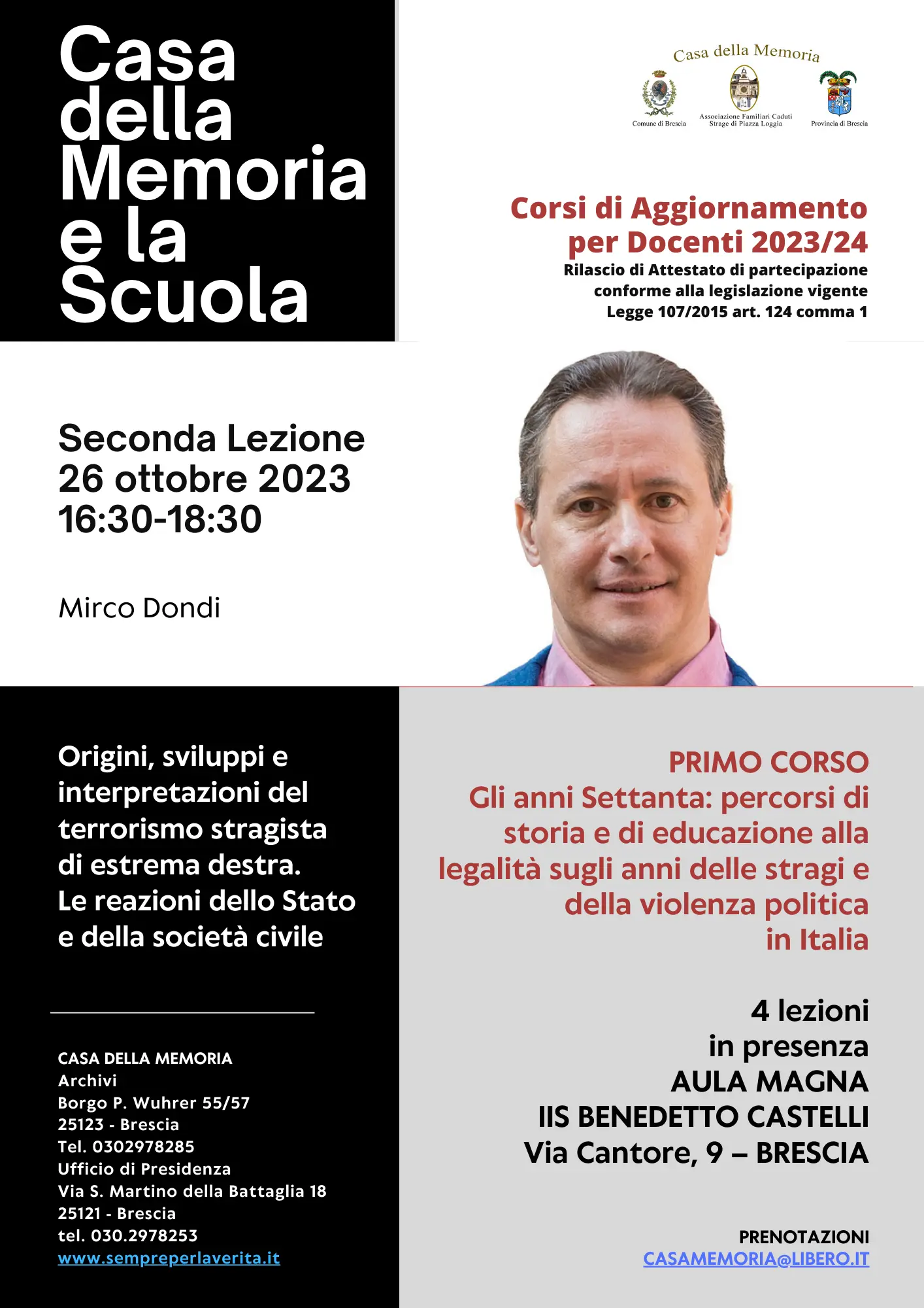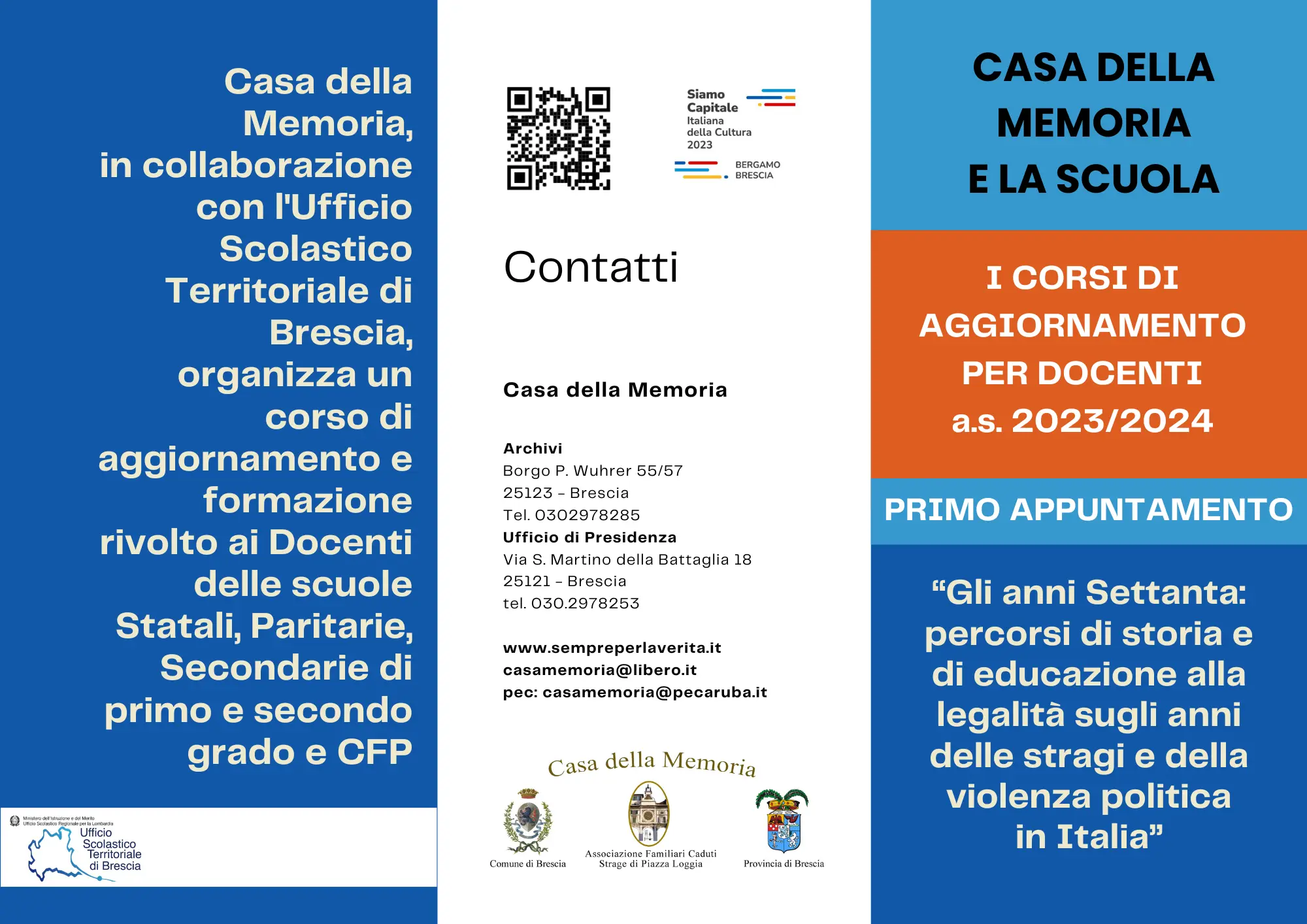 Casa della Memoria, in collaborazione con l’Ufficio Scolastico Territoriale di Brescia, organizza un corso di aggiornamento e formazione rivolto ai Docenti delle scuole Statali, Paritarie, Secondarie di primo e secondo grado e CFP, dal titolo