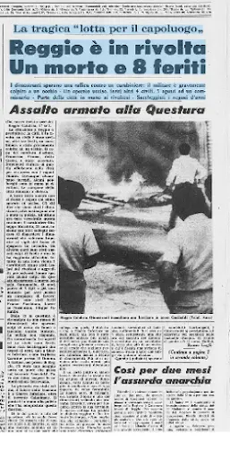 At the last minute this version seems plausible: Carabiniere Giuseppe Morabito, 21 years old, together with other colleagues tried to disperse the demonstrators who wanted to prevent the firefighters from putting out a fire. Shotgun shots were fired from various sides and one hit him in the eye. Meanwhile, in a nearby area, 3 carabinieri had been isolated by the rioters and attacked: to save themselves they fired some shots. One of these hits Angelo Campanella.