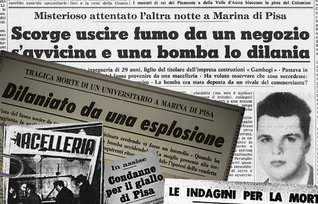 On the night between Saturday 13 February and Sunday 14 February 1971, a 29-year-old Pisan university student majoring in engineering, Giovanni Persoglio Gamalero, returned home in the company of his wife Graziella Leandri from an evening at the disco, at around 00.50, on the seafront of Marina di Pisa aboard his Alfa Romeo 1750 car, he stopped to check the origin of a wisp of smoke that he had seen coming out of Aldo Meucci’s butcher’s shop. Once he got out of the car he was overwhelmed by a strong explosion caused by a bomb: various metal fragments penetrated his entire body, in particular the abdomen and the right thigh, where a metal fragment, the largest and most blunt, tore his body cleanly. femoral artery. Help was called by some young people, who were in the nearby Piazza Sardegna, and by his wife who remained miraculously unharmed. The emergency services, which arrived with a considerable delay (almost two hours), could not help but confirm the death during transport to the hospital.