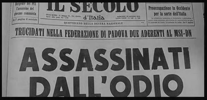 Ovviamente, la scelta del luogo per un’azione tanto ben congegnata non era casuale. Via Zabarella 24 era infatti la sede cittadina del Movimento Sociale Italiano, per i digiuni di storia repubblicana un partito di estrema destra facente capo a Giorgio Almirante, che in quegli anni stava vedendo i suoi consensi crescere verticalmente soprattutto fra i giovani… impossibile pensare, dunque, che una sede di partito cittadina fosse vuota a quell’ora del mattino, specie data la particolare situazione politica. Infatti, non lo era: due attivisti, quel mattino, erano intenti all’amministrazione in quell’ufficio, il sessantenne ex carabiniere Giuseppe Mazzola e il non ancora trentenne Graziano Giralucci, agente di commercio da poco divenuto padre, rugbista e fra i fondatori del neonato Cus Padova. Trovatisi al cospetto dei due, i membri del commando non esitarono a premere i grilletti delle loro pistole. Tempo pochi minuti, e la sede di via Zabarella era vuota, stavolta sul serio; solo due uomini a terra testimoniavano il blitz, due uomini caduti senza sapere perché, in una calda mattina di fine primavera.