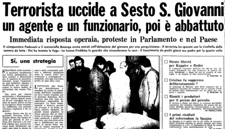 They die on December 15, shot dead by red brigadier Walter Alasia in Via Leopardi in Sesto San Giovanni (MI). That night, agents of the Security Service, the Political Office of the Milan Police Headquarters and the Commissariat of Sesto San Giovanni broke into the home of Alasia, believed to be an important member of the Red Brigades. The terrorist immediately reacts by firing at the officers, fatally injuring Deputy President Padovani. A violent shooting is unleashed. Marshal Bazzega, finding Alasia’s parents on his own line, does not shoot and the brigadier who fires at the police officer takes advantage of this, wounding him mortally. The terrorist launches out of the window and in the courtyard engages in a second shooting with the officers finally being killed. Deputy Quaestor Padovani dies during transport to the hospital. Marshal Sergio Bazzega dies in hospital, during a desperate surgical operation.