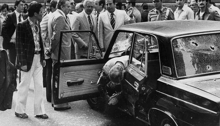 The car stops to enter via del Giuba; two bursts of machine gun fire reach the car: the first, aimed at the windshield, hits Vittorio Occorsio head-on, the second – from close range and while the magistrate is trying to escape from the car – kills him. More than 30 shell casings were found at the scene.