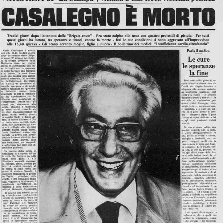 Il vicedirettore de La Stampa morì il 29 novembre 1977, dopo 13 giorni di agonia.