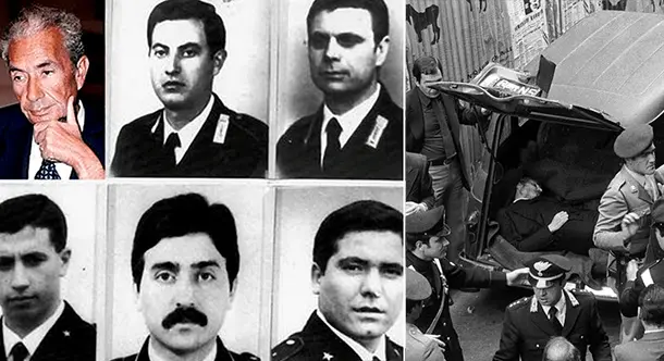 At about 9:00 am in via Mario Fani, Trionfale district, the car with Aldo Moro on board and that of the escort were blocked at the intersection with Via Stresa by a group of terrorists who immediately opened fire, killed the five men of the escort in a few seconds and kidnapped Moro. The terrorists immediately restarted in several cars and lost their tracks. In via Fani there remained the Fiat 130, with the ‘Roma L59812’ on which Moro was traveling, with the corpses of the driver, pinned by the carabinieri Domenico Ricci (43 years old) and the head of security, marshal of the carabinieri Oreste Leonardi (51 years old), and the Alfa Romeo Alfetta with the ‘Roma S9339393’ of the escort agents with the corpse of the guard on board. Giulio Rivera (23 years old) and the deputy brigadier of Public Security Francesco Zizzi (29 years old) seriously injured but still alive; supino riverso on the road level, near the car, also remained the body of the P.S. guard. Raffaele Iozzino, 24 years old. In front of the Fiat 130 remained a family Fiat 128 car with a license plate of the diplomatic corps ‘CD 19707’, stopped at the intersection and abandoned by its occupants.