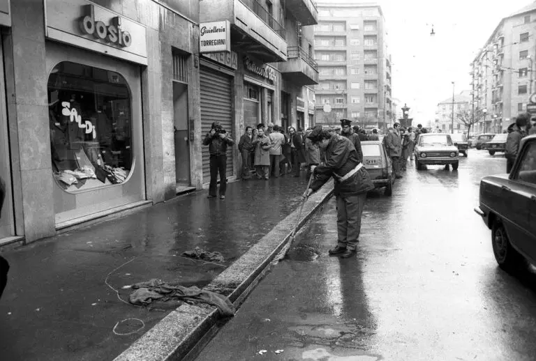 The following 5 March the terrorist group, with an anonymous phone call to a journalist in Milan, indicated the place where the latter would find a statement claiming the fact in which, in addition to declaring themselves strangers to the wounding of Torregiani’s son, for which they expressed regret, the terrorists declared that the action was aimed at ‘conquering political hegemony over the small underworld’, otherwise destined to end up ‘…under the hegemony of the great underworld historically entwined with the power of capital’. This and the contemporary Sabbathin crime are then signed by the Communist Nuclei for the Proletarian Guerrilla through the flyer left in a telephone booth in Piazza Cavour in Milan. After the murder, the members of the PAC Sisinnio Bitti and Marco Masala were arrested.
