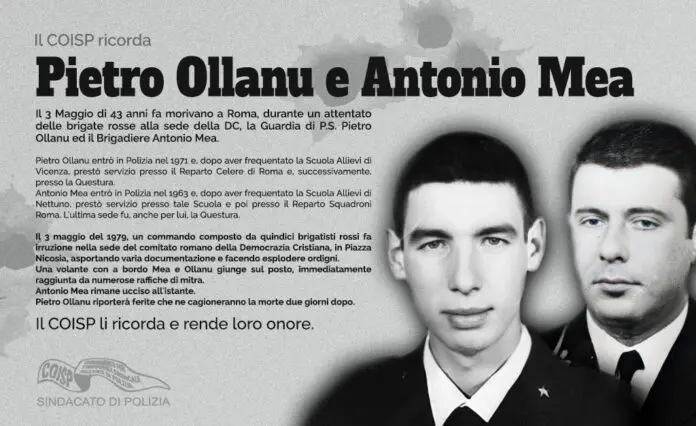 On May 3, 1979, during the initial phase of the political campaign for the parliamentary elections, a commando of at least 13 members of the Red Brigades attacked the regional committee headquarters for the Lazio region of the Christian Democracy party in Rome, located in Piazza Nicosia. The brigatists acted in three groups: two groups of militants, led respectively by Bruno Seghetti and Prospero Gallinari, entered the party headquarters and occupied the first and second floors, while the group led by Francesco Piccioni remained in the square to counter any intervention by law enforcement. After immobilizing those present, the brigatists from Seghetti’s group placed four explosive devices inside the building and fled with files and documents. Meanwhile, Gallinari, positioned at the entrance of the DC headquarters, and the hit squad led by Piccioni had to confront a patrol from the 1st District Police (radio call sign “DELTA 19”) that arrived, riddling their vehicle with machine gun fire. Certainly firing were Piccioni’s Kalashnikov and Anna Laura Braghetti’s M12. Brigadier Antonio Mea died instantly, while officer Pierino Ollanu died on May 10 from the injuries sustained. A third officer, Vincenzo Ammirata, was injured. Investigations conducted by the DIGOS led to the identification of the perpetrators, who were arrested and sentenced to life imprisonment. Two members of the group, Antonio Savasta and Emilia Libera, were arrested in 1982 by NOCS agents in Padua during an operation to free the American General James Lee Dozier, who had been kidnapped by terrorists.