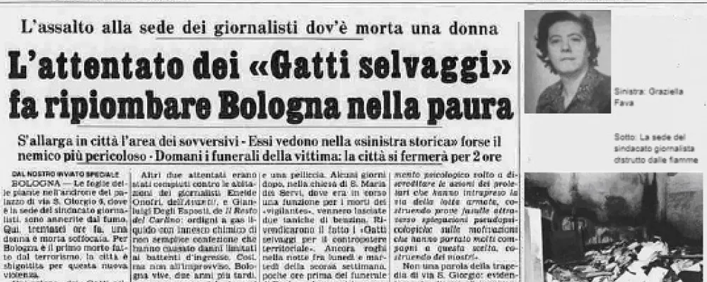 The firefighters managed to rescue the two people, who had been locked up in a closet, but the smoke had now invaded the upper floors of the building: Graziella Fava, who cared for an 82-year-old, did everything to save her and succeeded, the elderly woman was severely intoxicated but survived. Graziella Fava was instead found only hours later without life on the landing. A little later, an anonymous phone call to the newspaper Il Resto del Carlino claimed action by the Wild Cats: an armed organization of the extreme left active in the Bologna area in the second half of the seventies.