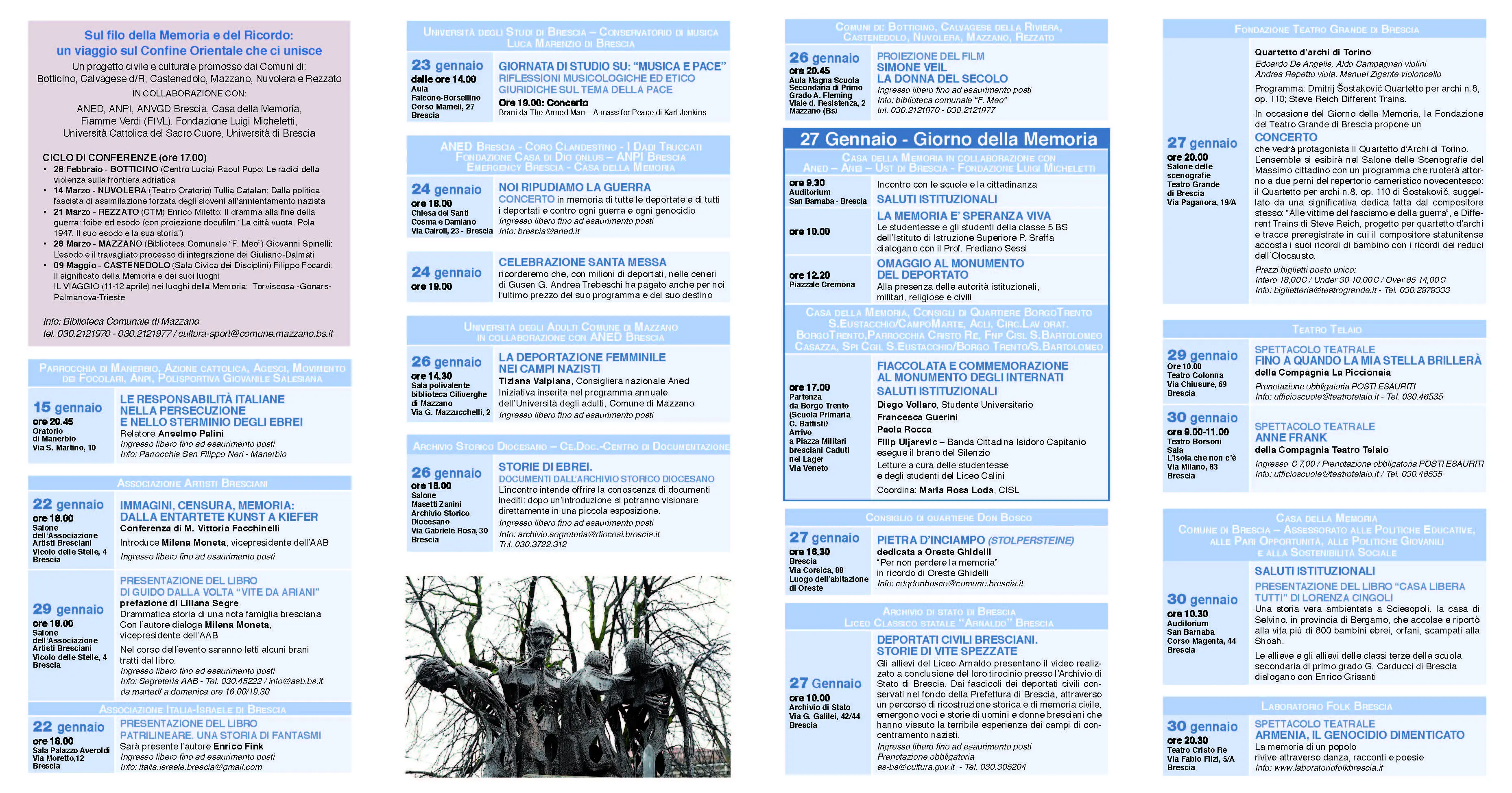 In allegato la brochure con le iniziative previste a Brescia e provincia per il Giorno della Memoria 2026